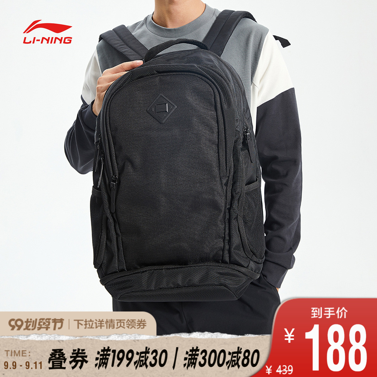 李宁双肩包男包女包新款训练系列背包学生书包电脑包运动包