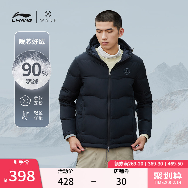 李宁短款羽绒服男冬季韦德男装连帽加厚外套鹅绒保暖红色运动服男