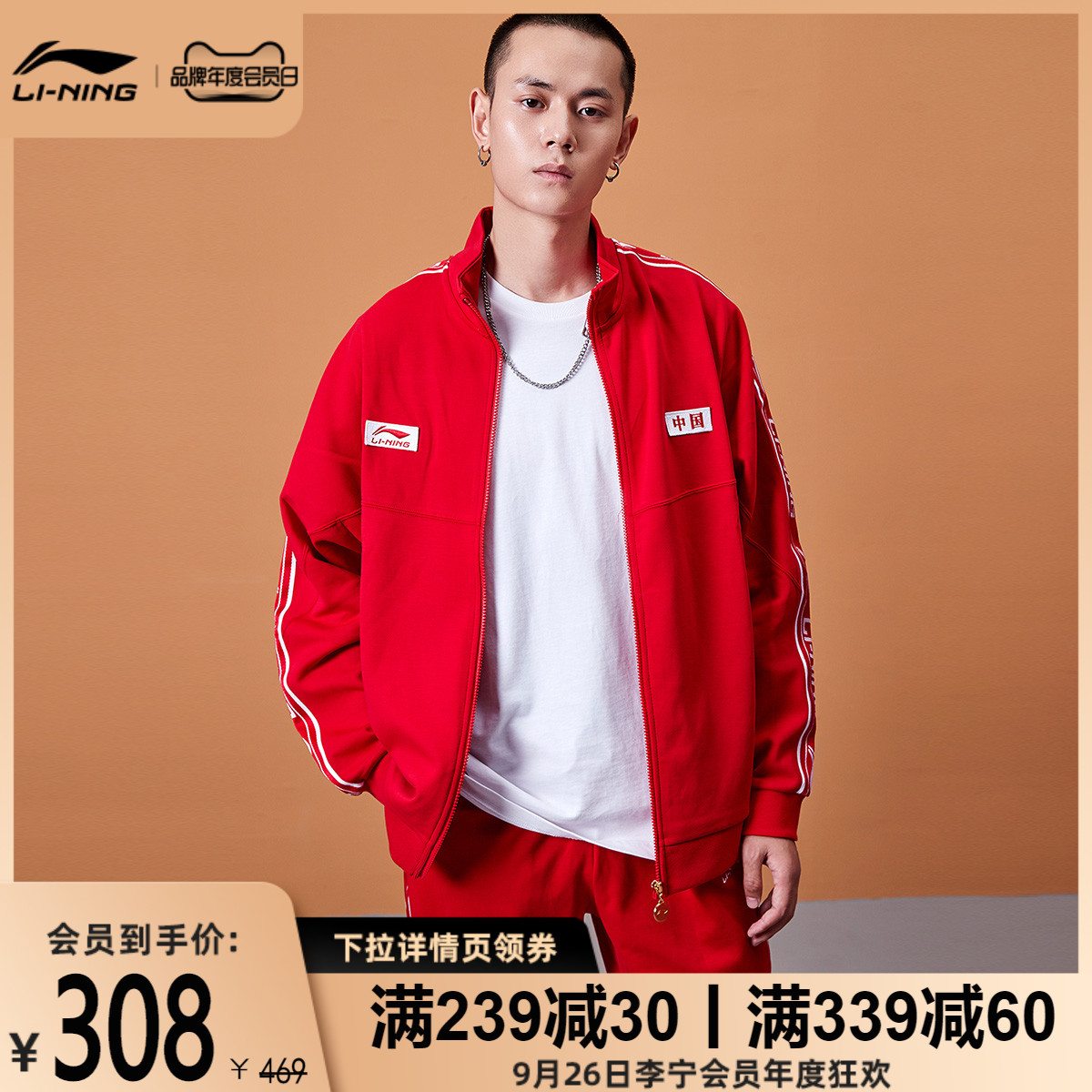 李宁外套男士开衫宽松圆领卫衣春秋季国潮logo休闲针织运动外套男