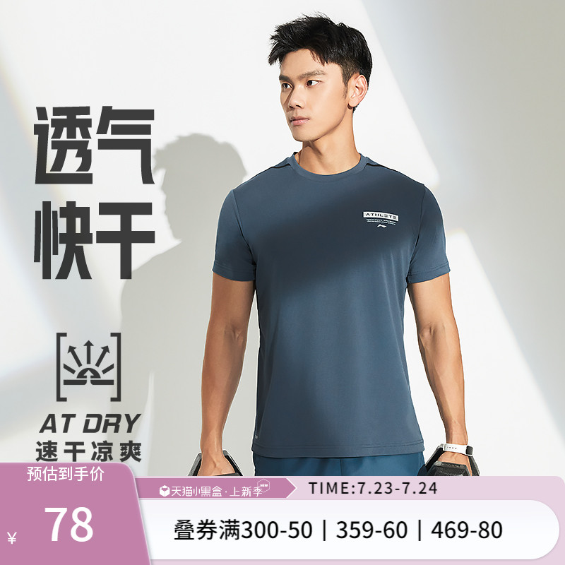 李宁短袖男夏季薄款速干t恤透气吸汗跑步服训练健身运动上衣