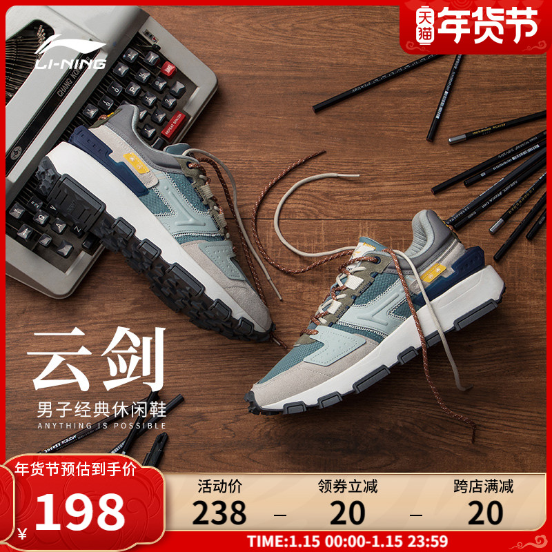 李宁休闲鞋男鞋云剑春秋男士新款复古运动鞋老爹鞋反光软底鞋子男