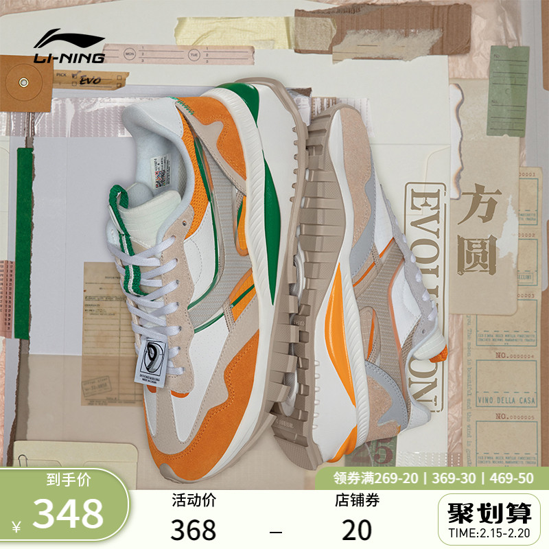 李宁休闲鞋女鞋方圆 EVO鞋子女士经典时尚厚底低帮学生运动鞋