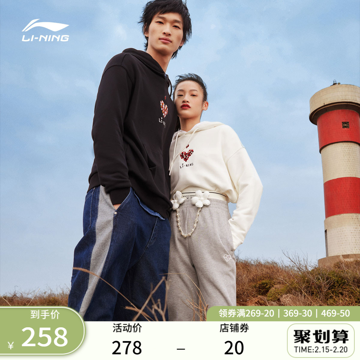 李宁卫衣男2022新款春季情侣装套头长袖连帽上衣女刺绣运动服男士