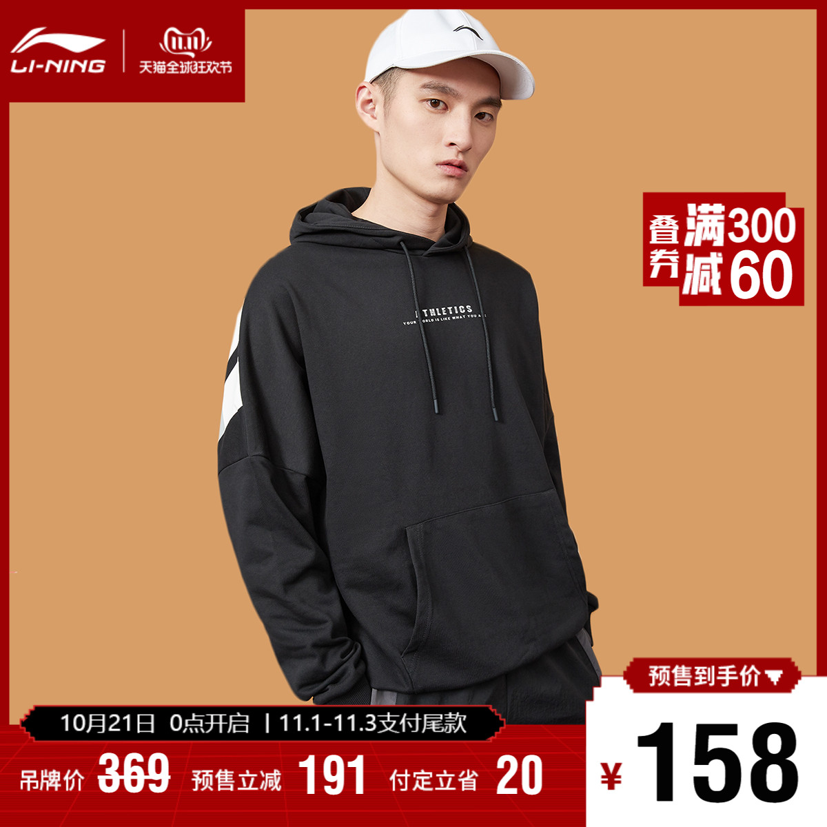 双11预售李宁卫衣男女同款官网新款套头长袖连帽宽松上衣针织运动