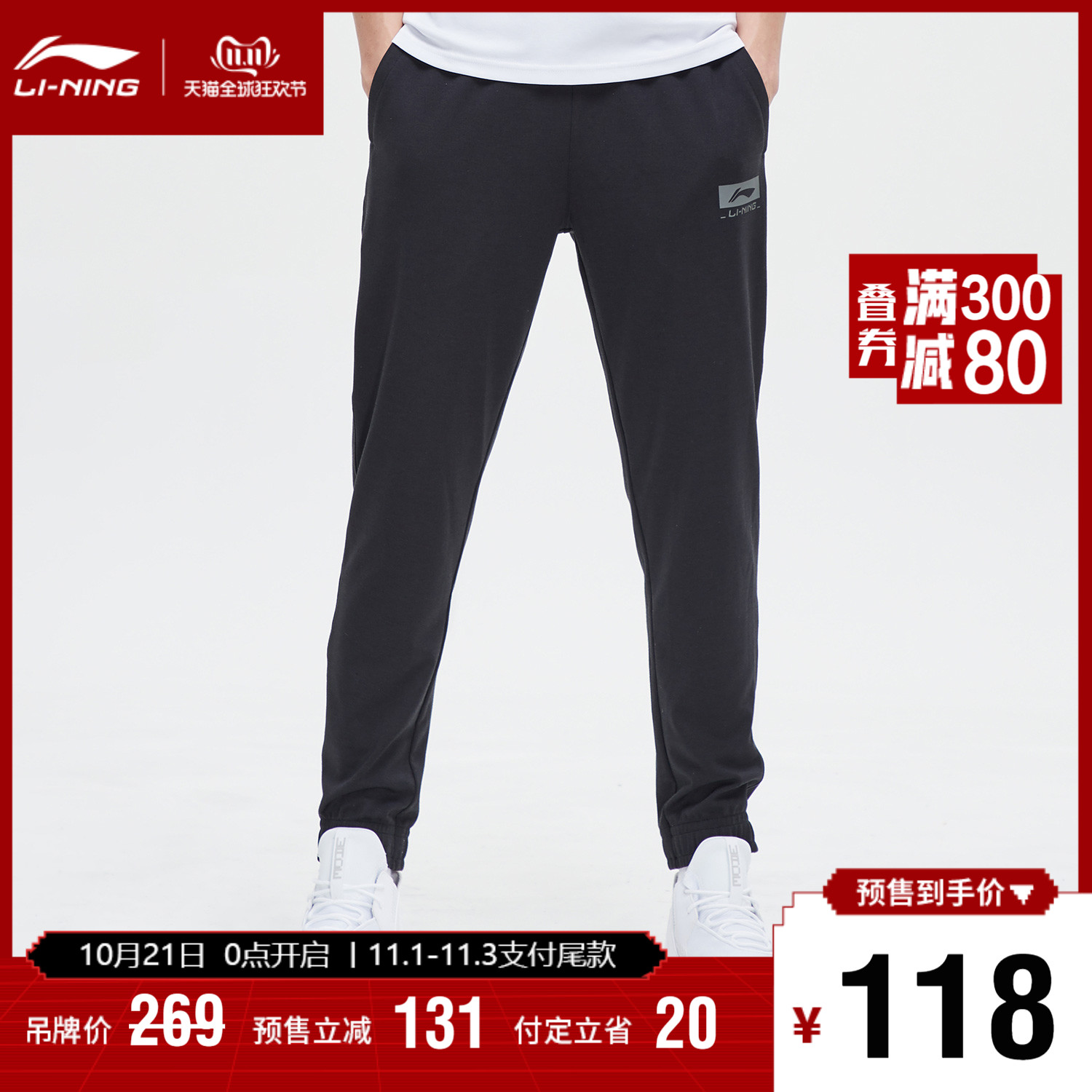 双11预售李宁卫裤男士篮球长裤休闲裤子宽松秋冬针织运动裤