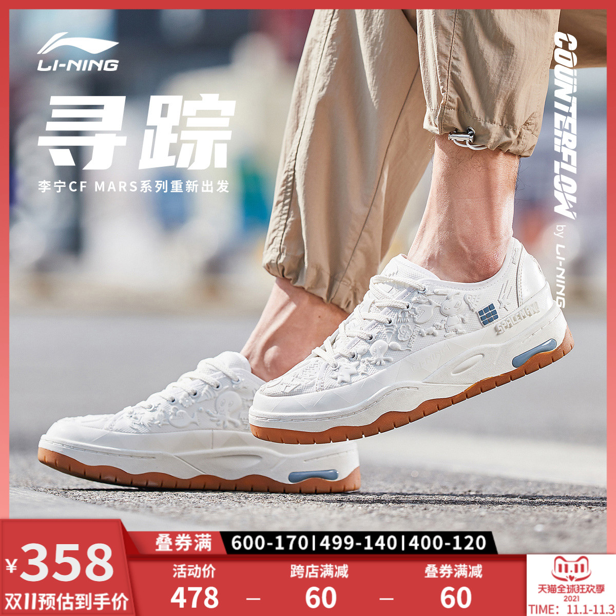 华晨宇同款李宁CF寻踪休闲鞋男鞋新款运动鞋男士小白鞋板鞋女