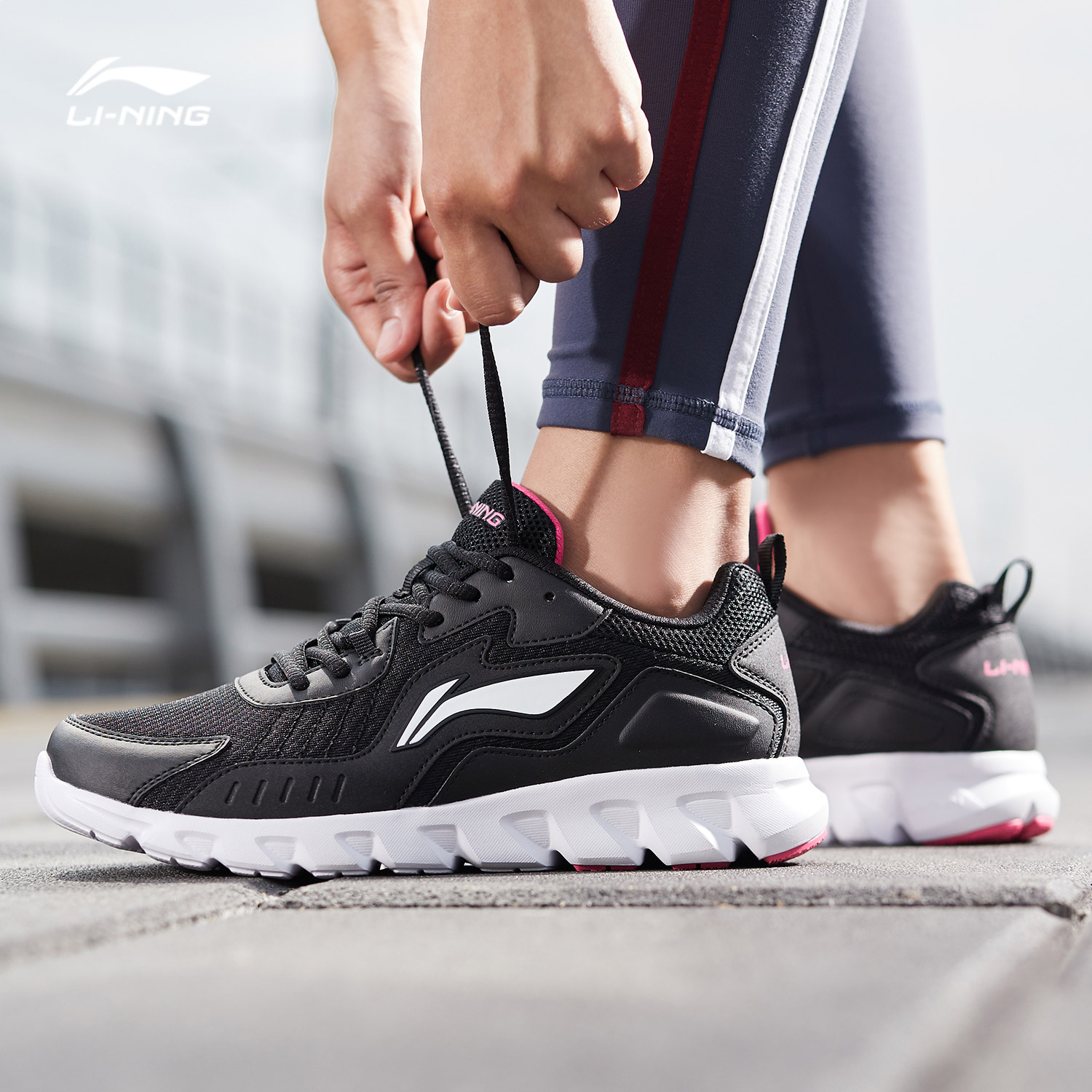 李宁跑步鞋女轻便跑鞋低帮女鞋轻便舒适网面透气休闲鞋女运动鞋子