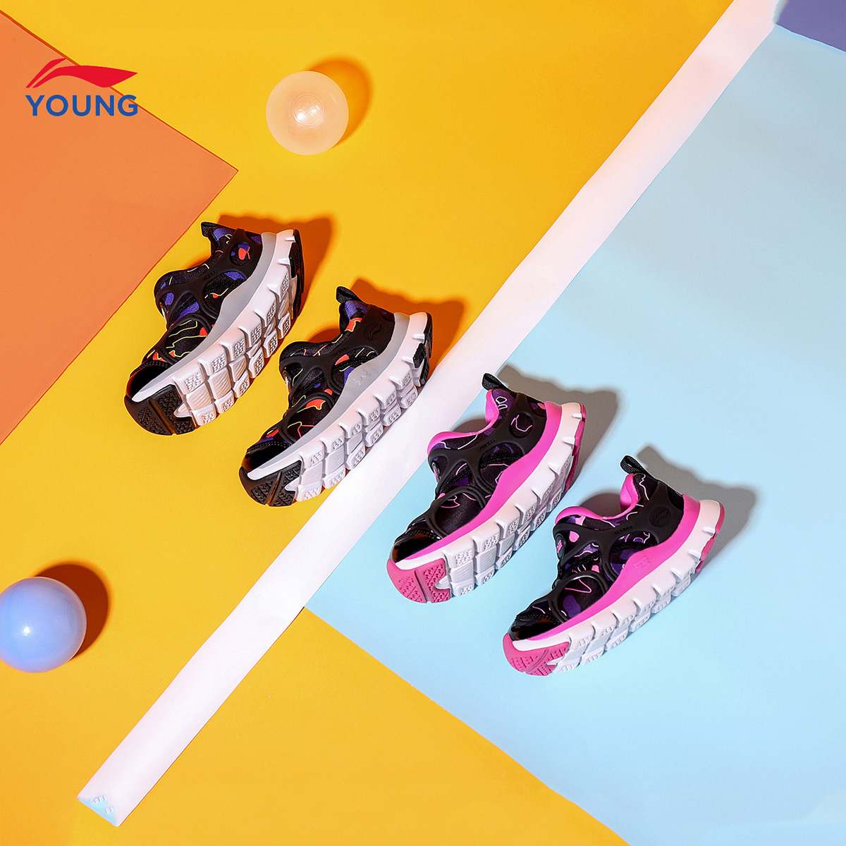 • 李宁官方网店李宁童鞋男女小童3-6岁李宁云减震回弹时尚毛毛虫运动鞋01/4