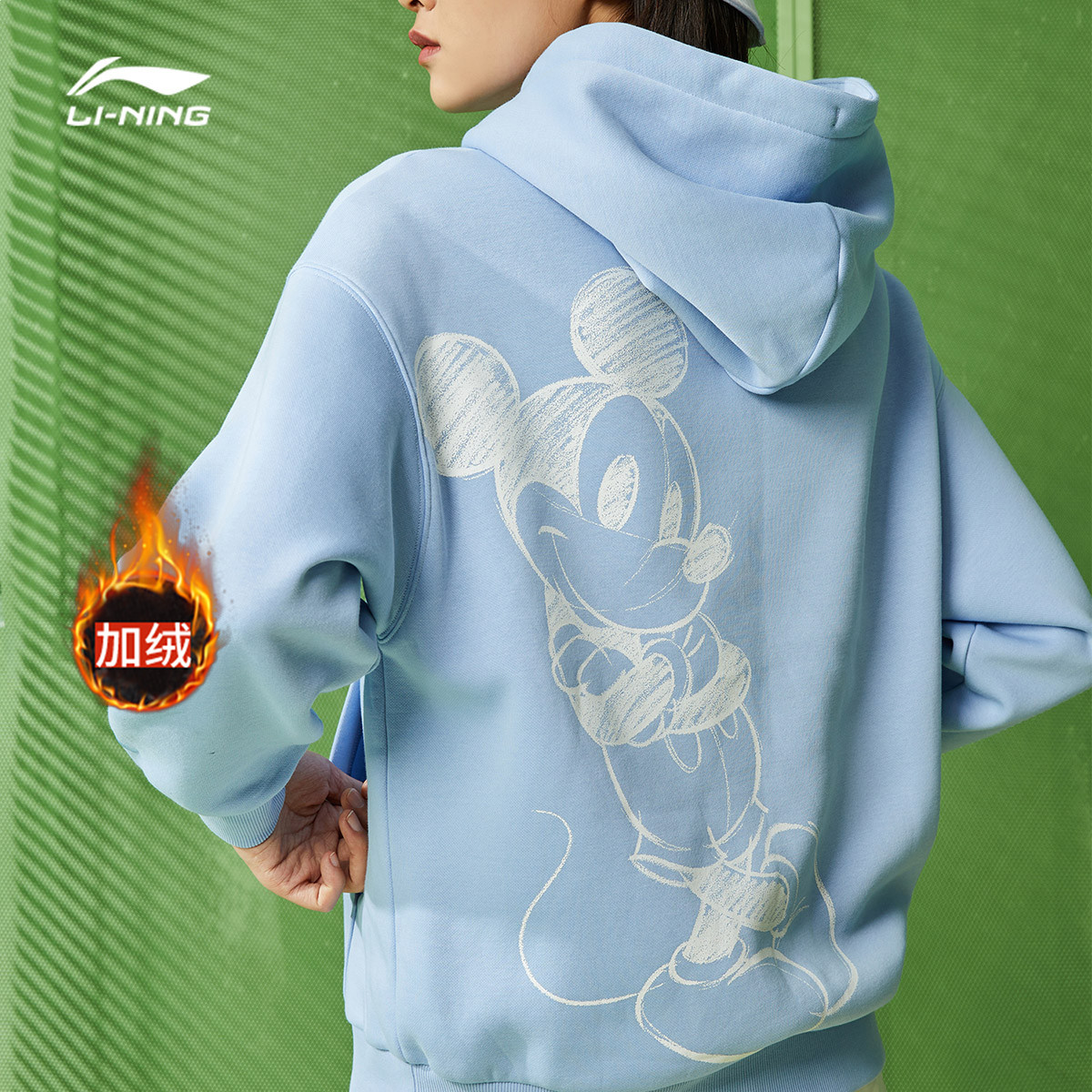 李宁官方网店双11预售李宁迪士尼联名卫衣女士官网加绒套头外套连帽女运动