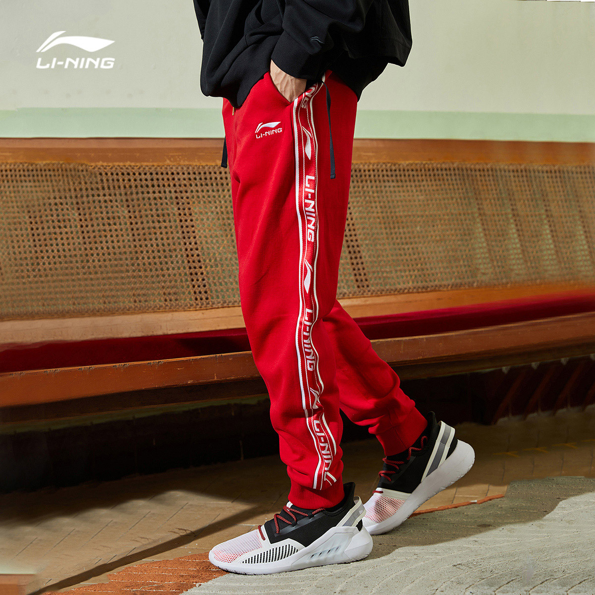 李宁官方网店李宁卫裤男士红色字母印花束脚休闲裤小脚秋冬针织运动长裤N11.11:叠券满300-60,469-100