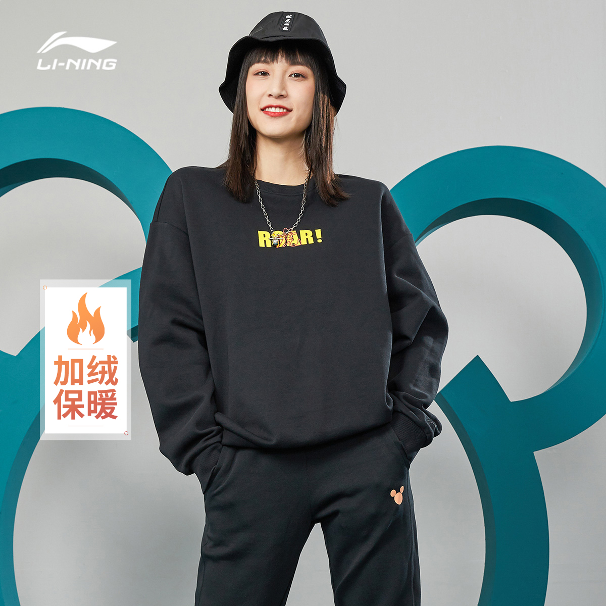 李宁官方网店迪士尼|李宁联名系列功夫米笈男女同款新款长袖加绒加厚运动卫衣