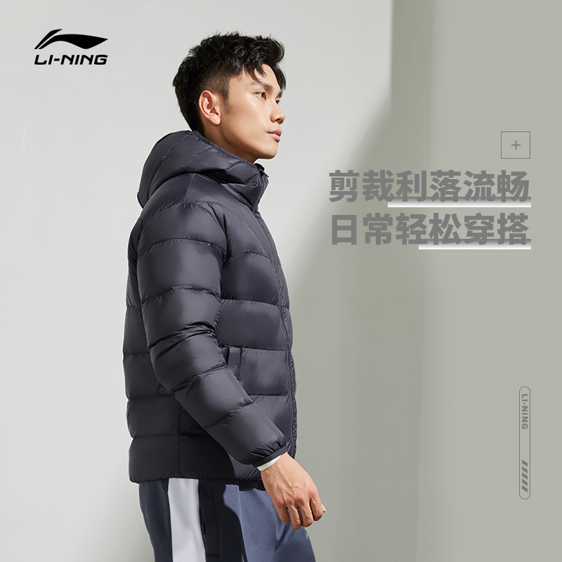 • 李宁官方网店李宁短款羽绒服男士冬季新款健身男装保暖外套连帽夹克鸭绒运动服34/4