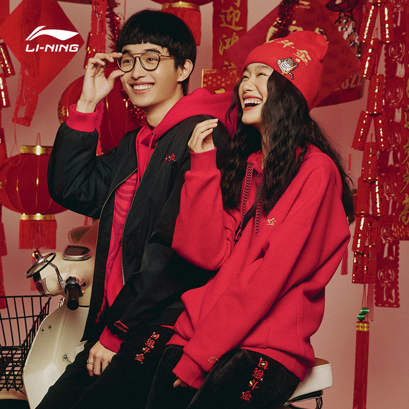 李宁官方网店李宁卫衣女日进斗金2022新款虎年红色连帽上衣女宽松新年运动服2.15-2.20 领券满269-20,369-30,469-50