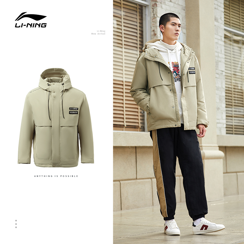 • 李宁官方网店李宁中长款羽绒服男冬季新款保暖夹克连帽外套宽松鸭绒运动服23/4