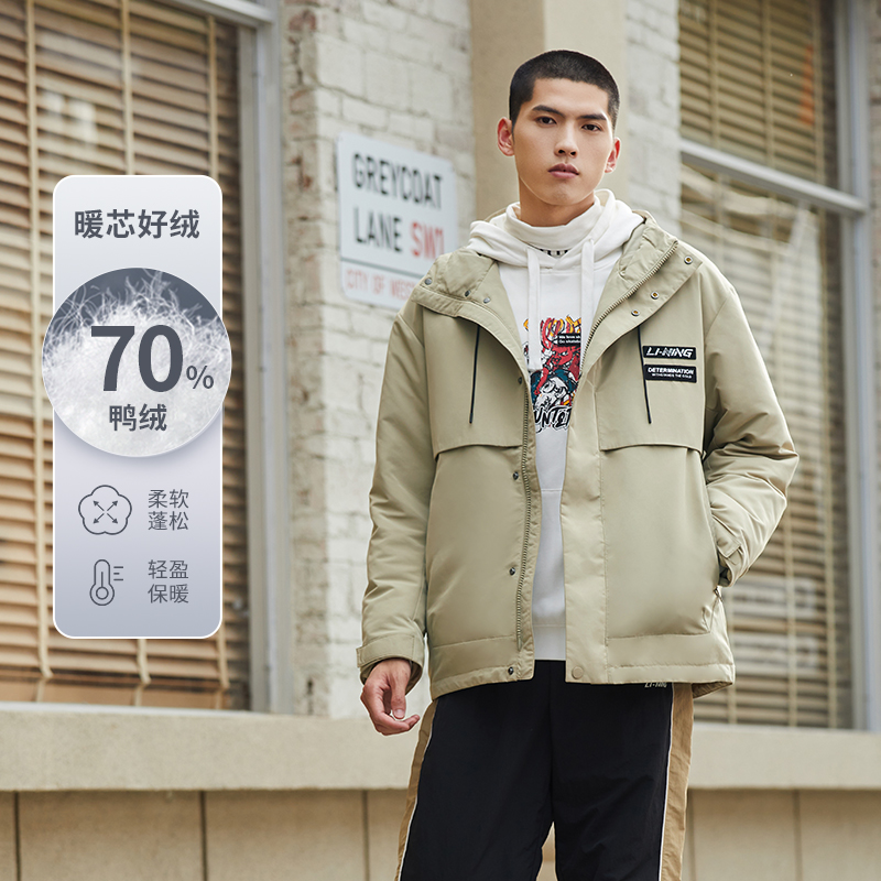 • 李宁官方网店李宁中长款羽绒服男冬季新款保暖夹克连帽外套宽松鸭绒运动服12/4