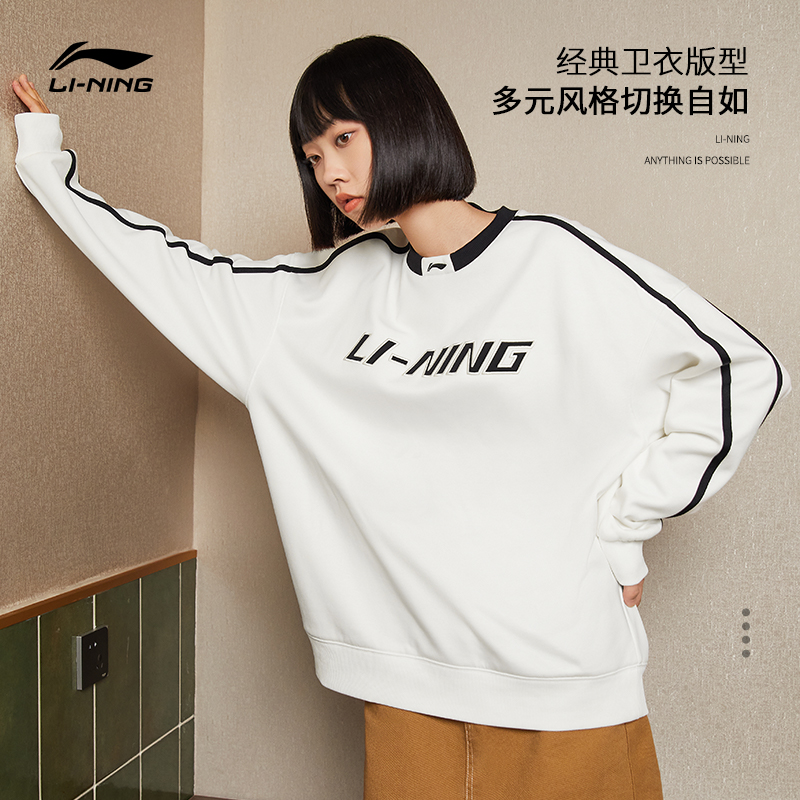 李宁官方网店李宁卫衣男士春秋圆领上衣情侣装刺绣宽松休闲套头衫运动服女29日20点-5月5日 叠券满399减90,699减160