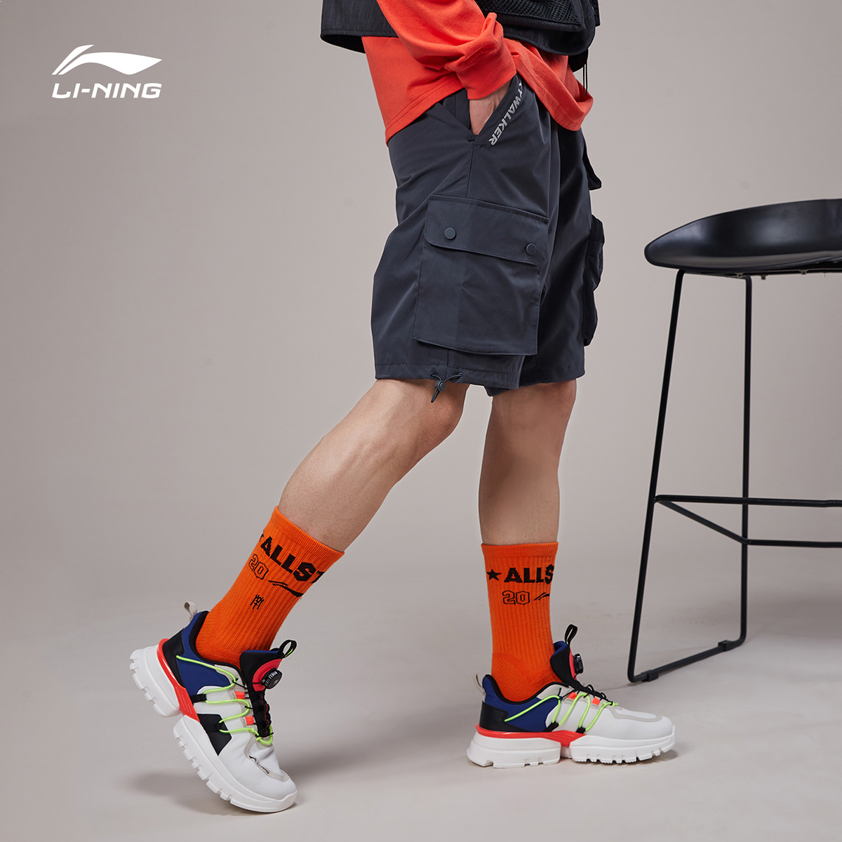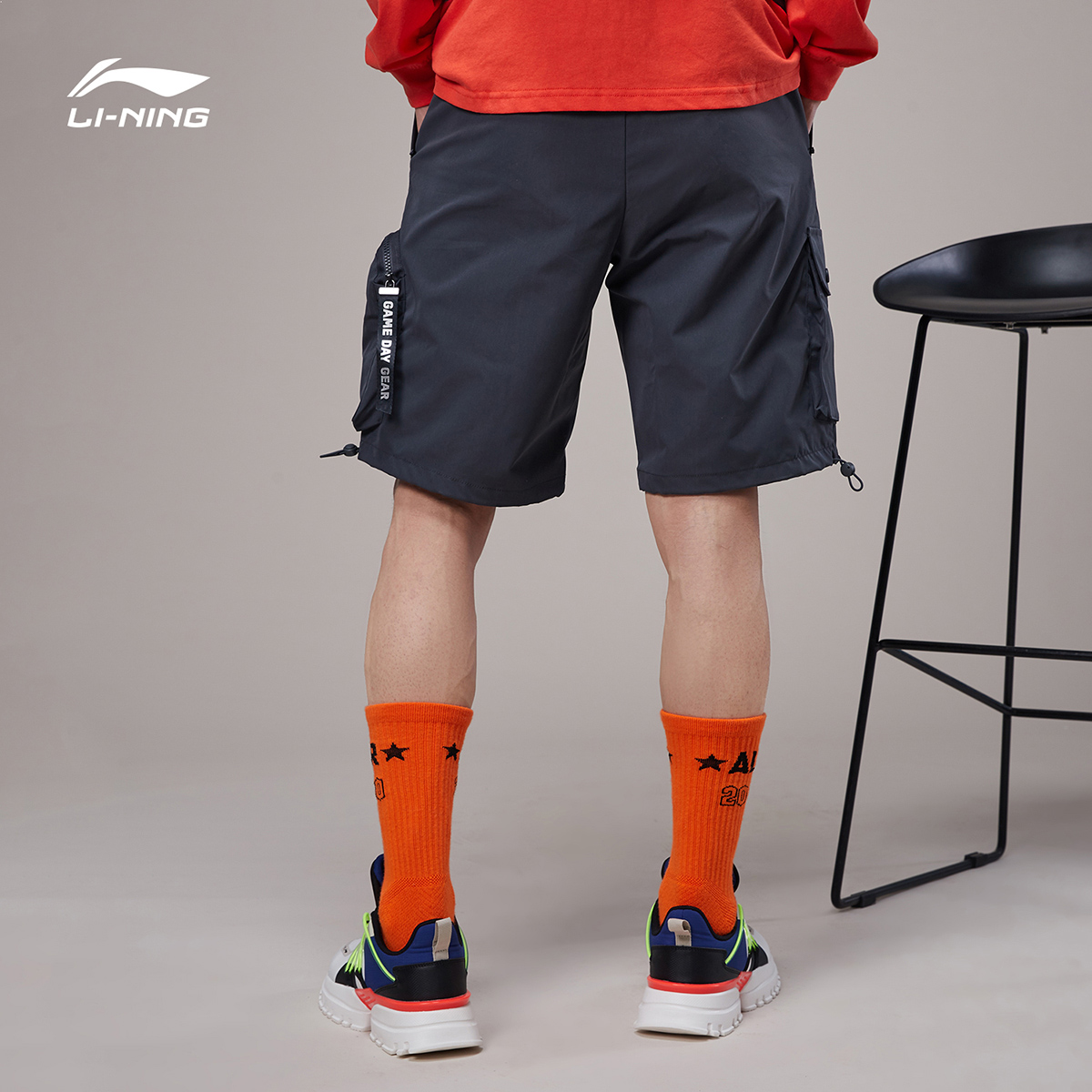 李宁运动短裤男士时尚潮男短裤夏季宽松中国工装裤梭织休闲五分裤